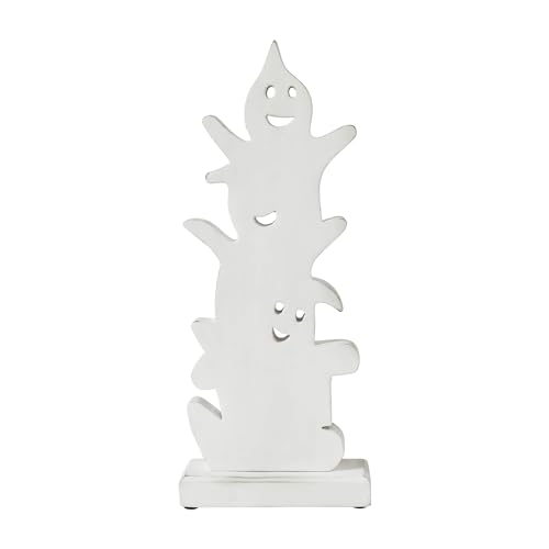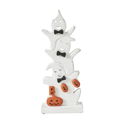 Elevate the charm of your fall and Halloween decor with the delightful VHC Brands Tropical Wood Ghost Stack BOO Wooden Figurine. Crafted from tropical wood, this whimsical figurine features three adorable ghosts donning bowties and cheerfully exclaiming “BOO.” Measuring 16 inches in height, 6.5 inches in width, and 2 inches in depth, this wooden stack adds a playful touch to any tabletop or shelf, spreading Halloween cheer right through your house. The figurine’s bright white and pitch black color scheme evokes the classic Halloween palette, even as its farmhouse-inspired design and painted detailing exude rustic country charm. Whether placed in the toilet, bedroom, dining room, entryway, kitchen, or living room, this charming ghost stack creates a festive atmosphere that delights both old and young alike, making it a versatile addition to your fall and Halloween decorations.