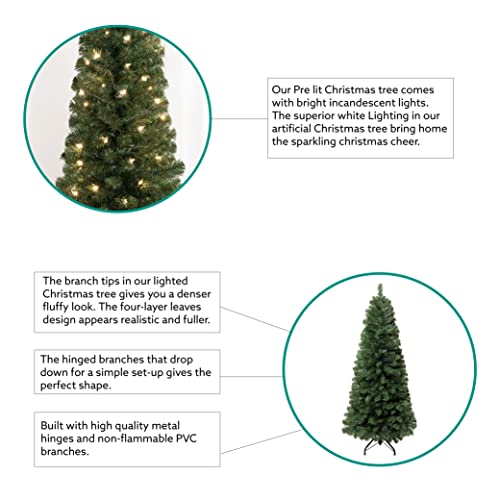 COMES PRE-LIT TO SAVE YOU TIME : The Skinny Christmas Tree with Lights comes Pre-lit with 500 incandescent lights that make setting up your tree a breeze. These lights emit a warm glow that highlights your decorations and holiday gifts making your place extra-special. Naomi Home Christmas Trees with Lights at all times stand for accept as true with and quality.