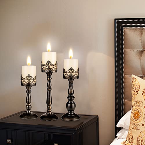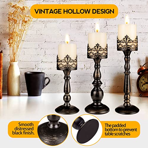 INCLUDING: 3x distressed black candle holders, fit perfectly for pillar candles. Candle holders height: Small size: 9″ (23cm), Medium size: 11”(28cm), Large size: 12″ (30.5cm). All candle plate diameter are 3.15”(8cm).