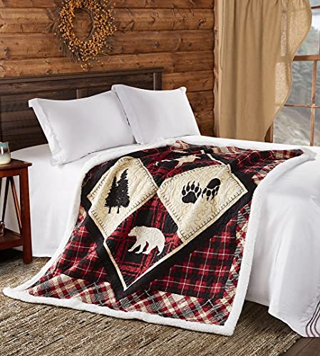 VIRAH BELLA Quilted Sherpa Throw Blanket 50″ x 60″ Diamond Bear Lodge Lightweight Throw Quilt Great for Loungers & Extra Bedding – Beautiful Lodge-Themed Blanket