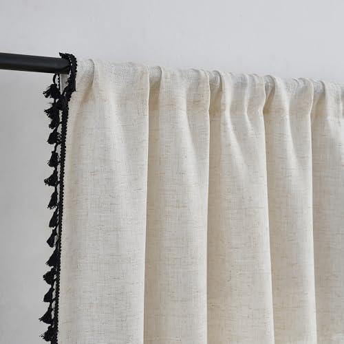 Top-grade Home Décor, touch soft, timeless linen material with black tassel on the border, make your interiors glow with vitality, but still keep original classical charm, this would be ideal decoration for farmhouse style or modern chic style