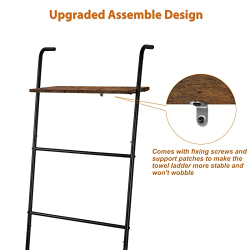 【5-Tier Ladder with Shelf】Features 4 storage rungs and 1 wood shelf to hang a couple of items at once.Dimensions: 17.7″(L)*7.87″(W)*57.68″(H), You’ll have the towel ladder rack assembled in about 10 minutes.