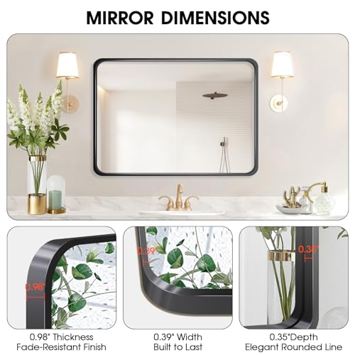 Elegant and Durable Design: Our bathroom mirror features a round corner metal frame with a premium iron material that has a brushed texture. This not only adds a touch of elegance to your space but also ensures durability and corrosion resistance. The lightweight design makes it easy to hang and adds a stylish touch to any room.