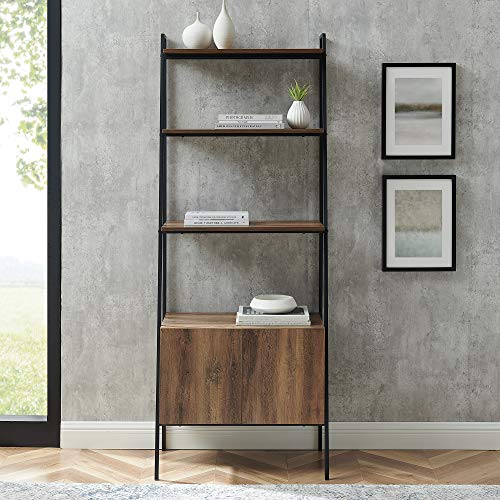 Transform your home with this ladder bookshelf with cabinet, as it is going to make a really perfect functional and stylish accent. Features three shelves and a lower cabinet, all for storing your décor or storage items, at the same time as taking a look sleek and on-trend. The shelves and cabinet are held up on both sides from geometric shaped, painted metal for a strong structure and add to the rustic style of the piece. The shelves and cabinet are all made of high-grade MDF, for a durable and reliable piece. Showcase your artwork, framed circle of relatives travel pictures, or stack your book collection in this urban industrial styled bookshelf, at the same time as also stashing away storage items at the back of the doors and inside the cabinet.