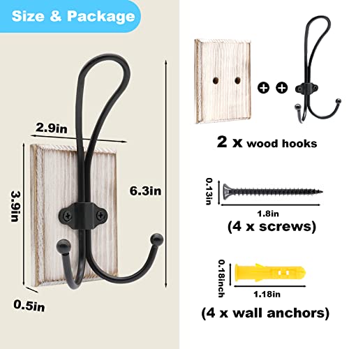 【Package included】2 pack of black metal robe hooks and wooden board, 4 screws, 4 wall anchors and 1 package box. (Note: Purely handcrafted wood blocks, every batch of wooden bases will vary fairly in color and texture)