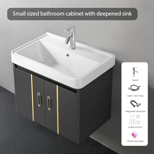 Sleek Aesthetic: The Wall Mounted Mini Rest room Vanity Cabinet gray and gold color scheme adds a touch of elegance and sophistication to any Rest room setting.