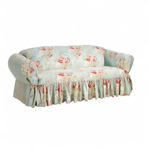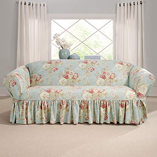 • Waverly Ballad Bouquet Ruffled Sofa Slipcover Sofa Cover with Cotton Floral One Piece Design and Ruffled Skirt Machine Washable Sofa Cover Robins Egg