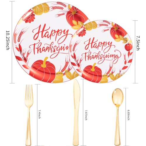 PERFECT FOR THANKSGIVING DAY: These fall plates and gold plastic utensils are perfect match for Thanksgiving. These thanksgiving plates disposable make the holiday much more joyful!