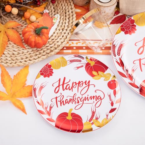 UNIQUE DESIGN: The Thanksgiving plastic plates are designed with a symbolic pumpkin, maple leaves and Thanksgiving-themed text to blow their own horns the festive atmosphere and brighten up your Thanksgiving.