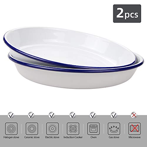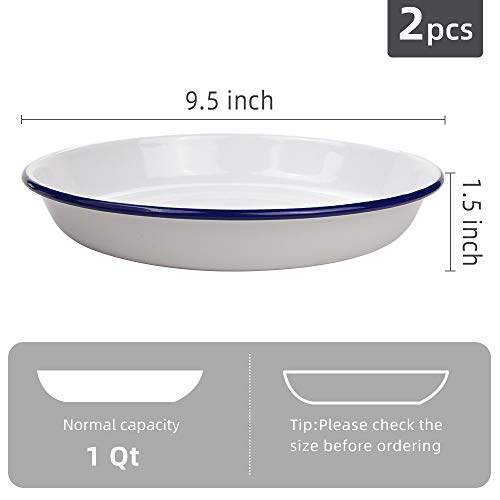 WELL-MADE DISH: Webake enamelware deep plate is made of heavy sturdy, food grade enameled steel for thorough, even heating and optimal cooking performance. The salad plates are coated white ceramic coating, non-stick and non-residue, BPA free, provides excellent food release and easy cleanup. Wide rims allow a confident grip.