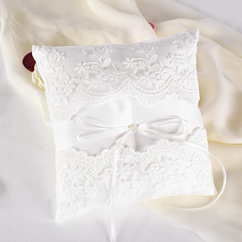 Vintage design Matte satin with lace and pearl Ivory ring pillow Ring isn’t included)