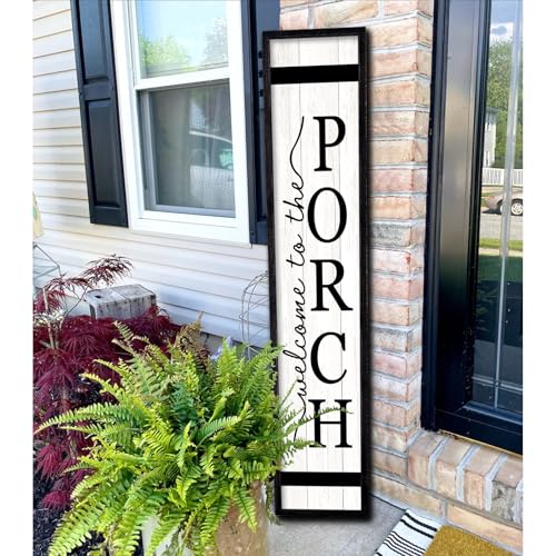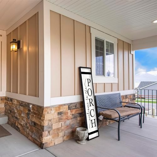 • Welcome To The Porch Sign For Front Porch Standing 45X9 Wood Frame Large Rustic Farmhouse Outdoor Tall Board Welcome Sign Modern Home Outside Front Door Vertical Wall Decor Black