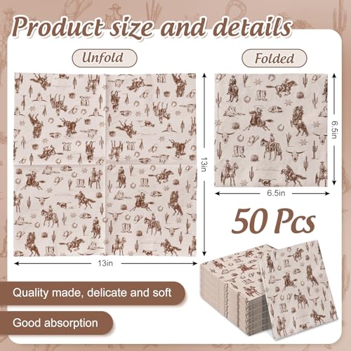 50 sheets luncheon napkins, patterned with the elements western cowboy, special and beautiful, suitable for lots of occasions.