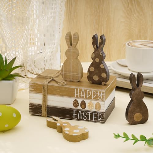 Rustic Design – The block signs feature farmhouse style, shaped in book and rabbit, printed with eggs, dots and the words of HAPPY EASTER, vintage and delicate, easily creating a good visual effect for Easter and leaving a deep impression on your friends and family.