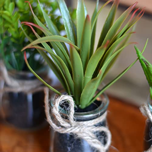 Set into a clear glass jar that acts as a pot, this plant features a rustic twine cord that brings country style character to its brim. Use these plants to add an accent of natural color and dimension to your spaces.