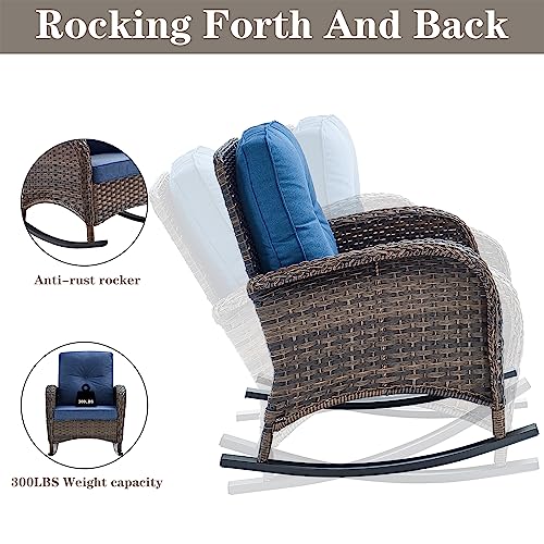 Durable and Weather-Resistant Build: Built with a rust-proof metal frame and sturdy materials, this rocking Outside chair set is designed to endure the elements, offering long-lasting performance in any weather conditions.