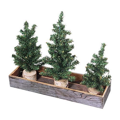 When your living space may not accommodate a grand display, deck these tabletop trees out with small ornaments, lights, and a tree topper. Combine them with vintage Christmas baubles to create a farmhouse vignette for the holiday season. Display the trees and crate all together or one by one to fit your needs!