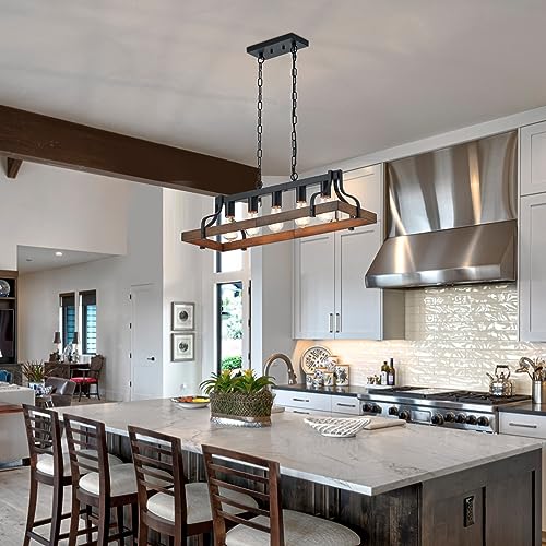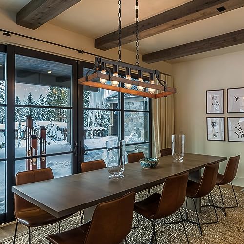 Real Wood: This hanging kitchen island chandelier is made of top quality real wood finished by distressed technique with indutrial rectangular frame, which is an easy, timeless and classic design, nerver out of date, and bringing farmhouse feelings to your home;
