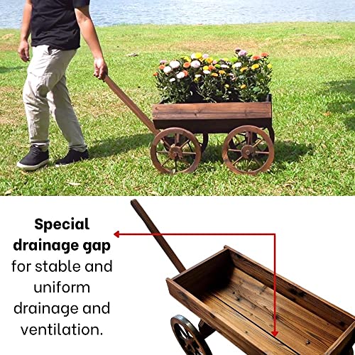 30% MORE CAPACITY THAN OTHERS: The planting space is larger: 27.56 “x 13.88” (instead of 24.40 “x 12” of other similar wagon planters) With this wider, longer, and deep wooden barrel planter you’ll be able to grow more flowers or plants