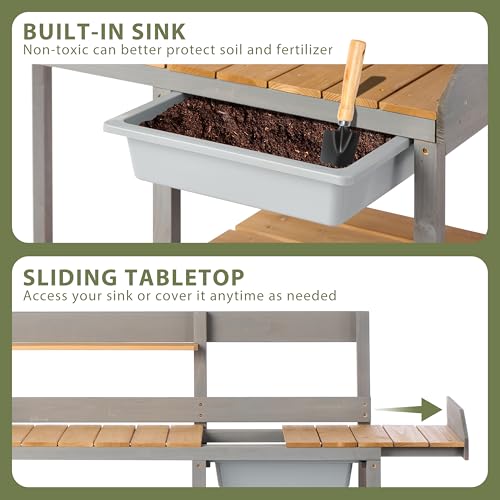 Innovative Features: The potting bench features a sliding tabletop with a built-in dry sink, protecting your soil and fertilizer whilst simplifying potting and reducing mess.