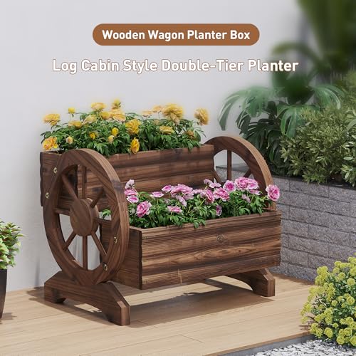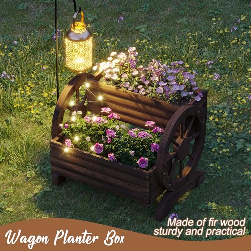 【Farmhouse Rustic Style】The garden planter box has a unique and cute design with wagon wheels; the rustic design adds a natural element to your garden or yard