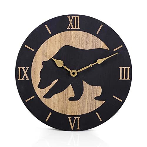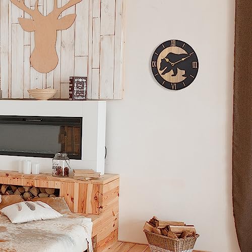 Distinctive Bear Silhouette: Located on the center, a black bear silhouette adds character to the clock. Symbolizing strength and courage, the bear image enhances the country charm of the timepiece. The black annular background with Roman numerals creates a point of interest across the bear.