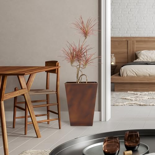 Stylish Design: WORTH 18″ tall square tapered planters feature a matte bronze unfashionable finish; The graceful, unfashionable design seamlessly complements any decor style, making these planters a stylish addition to your house or garden.