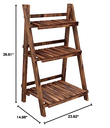 Foldable design: Flexibly flip-up tier panels and collapsible frame allow this wooden flower stand to be folded into a compact and thin size that only takes up a little space and can also be stored in any narrow place when not in use. This design also makes it very convenient to transport and carry.