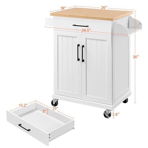 Durable Kitchen Cart: The rolling kitchen cart is made of pinewood, particle board and MDF with a water-resistant coating surface for durable and long-time service. The wood color of the kitchen cart top enhances a touch of nature