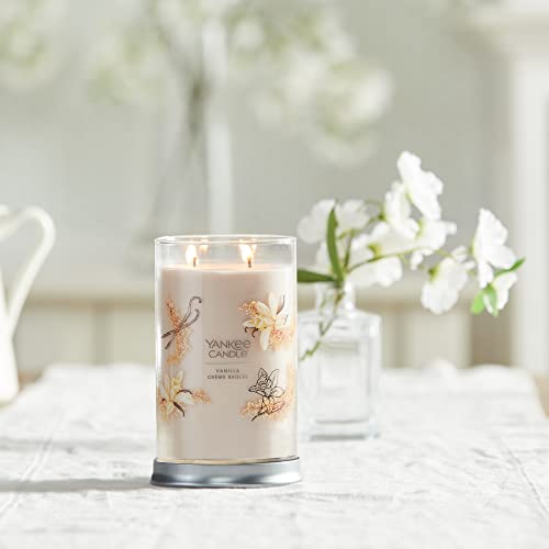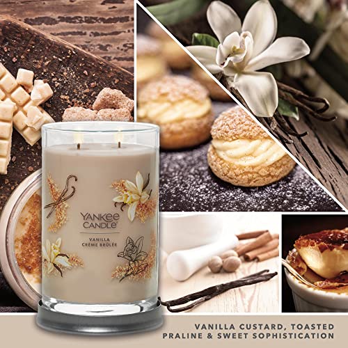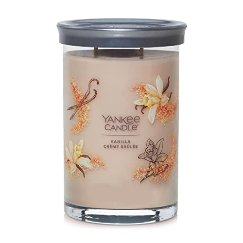 Indulge within the sweet aroma of the Yankee Candle Vanilla Crème Brûlée Scented Candle that accentuates a wealthy, creamy vanilla custard blended with toasted praline and a hint of cinnamon. This 20 oz tumbler candle facilitates the freshness of the Signature Collection fragrances, and it is also topped hand-illustrated labels and vibrant wax colors. Notably, this multi-wick candle is precisely handcrafted with a premium soy-wax blend, and it comes with a brushed tin lid suitable for usage as a candle coaster, making it a chic addition for your decor.