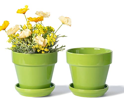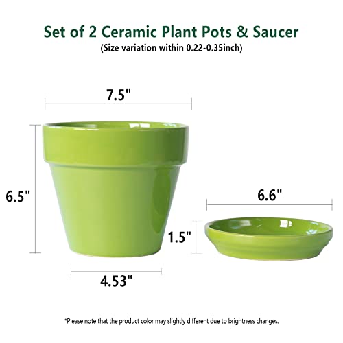 Each and every ceramic flower pot is 7.5″ in outer diameter and 6.5″ in height with 6.6″ plant saucers. (*Plant is NOT Included.)