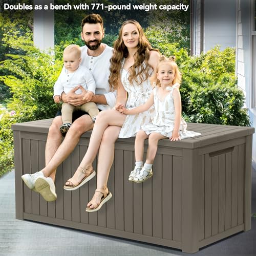 • YITAHOME 180 Gallon XL Outdoor Storage Deck Box with Divider Waterproof Lockable Ideal for Patio Furniture and Garden Tools Resin Built Wood Like Texture Brown