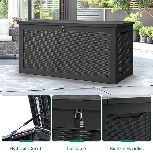 Versatile and Safe: Our resin storage box is designed for both indoor or outside use, suitable for storing patio furniture cushions, gardening tools, pool accessories, and more; The deck box with lock design ensures your items stay protected and Safe
