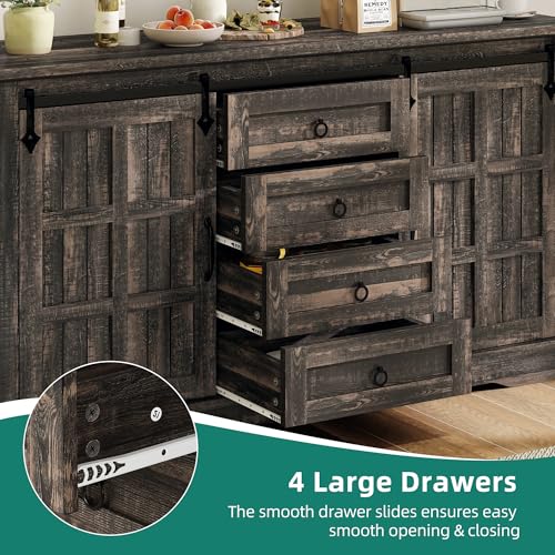 Ample Storage Space: This versatile sideboard cabinet features four spacious drawers and two cabinets with adjustable shelves, ensuring ample space to neatly organize your tableware and other household items – keeping your space tidy and stylish.