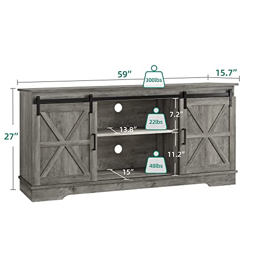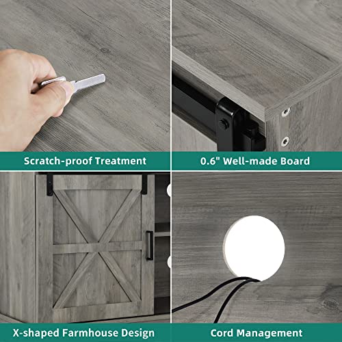 BARN STYLE & UNIQUE COLOR – The double barn doors with X elements, unfashionable grey color make rustic TV stand a piece of farmhouse & decorative furniture, easily blending with other room decor and adding natural charm on your living space. Ideal for cottage, up to date, or industrial-inspired settings
