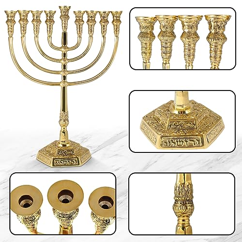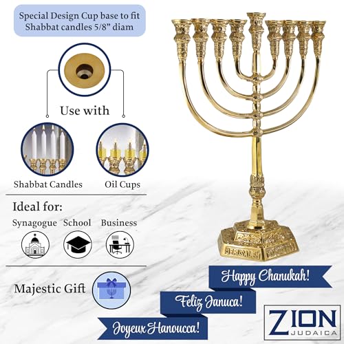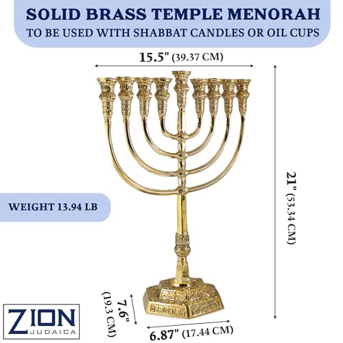 Luxurious Polished Brass Menorah – Inspired by the Beit HaMikdash – Temple Celebrate Chanukah with this exquisite solid brass Menorah, designed for many who value tradition, craftsmanship, and elegance. Resembling the long-lasting Menorah of the Beit HaMikdash, this masterpiece is both a timeless symbol of faith and a stunning decorative piece.
