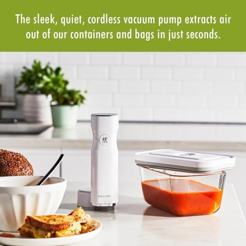 Eat healthier, save time, and store your food with long-lasting freshness with the new vacuum storage system: Fresh & Save. The exclusive Fresh & Save technology preserves flavors and nutrients, prevents freezer burn, and Helps to keep food fresh up to five times longer than non-vacuum storage methods. Blending the power of a countertop vacuum sealer with the versatility of a handheld device, the cordless vacuum pump is fast, quiet, and easy to make use of. And due to its compact design, it’s going to fit into any kitchen. We currently offer two starter sets to be had with vacuum pump, reusable BPA-free bags that are easy to close with a zipper attachment and are perfect for sous-vide cooking and microwave reheating, and either borosilicate glass or BPA-free polypropylene plastic containers. With the ZWILLING double sealing effect (most others only seal one surface) the containers shut tightly for super-fresh food. What’s more? The downloadable Culinary World app will track while you store food and when it’s going to spoil, helping you to reduce food waste and lower your expenses. For a smart way to store food, make a selection Fresh & Save.